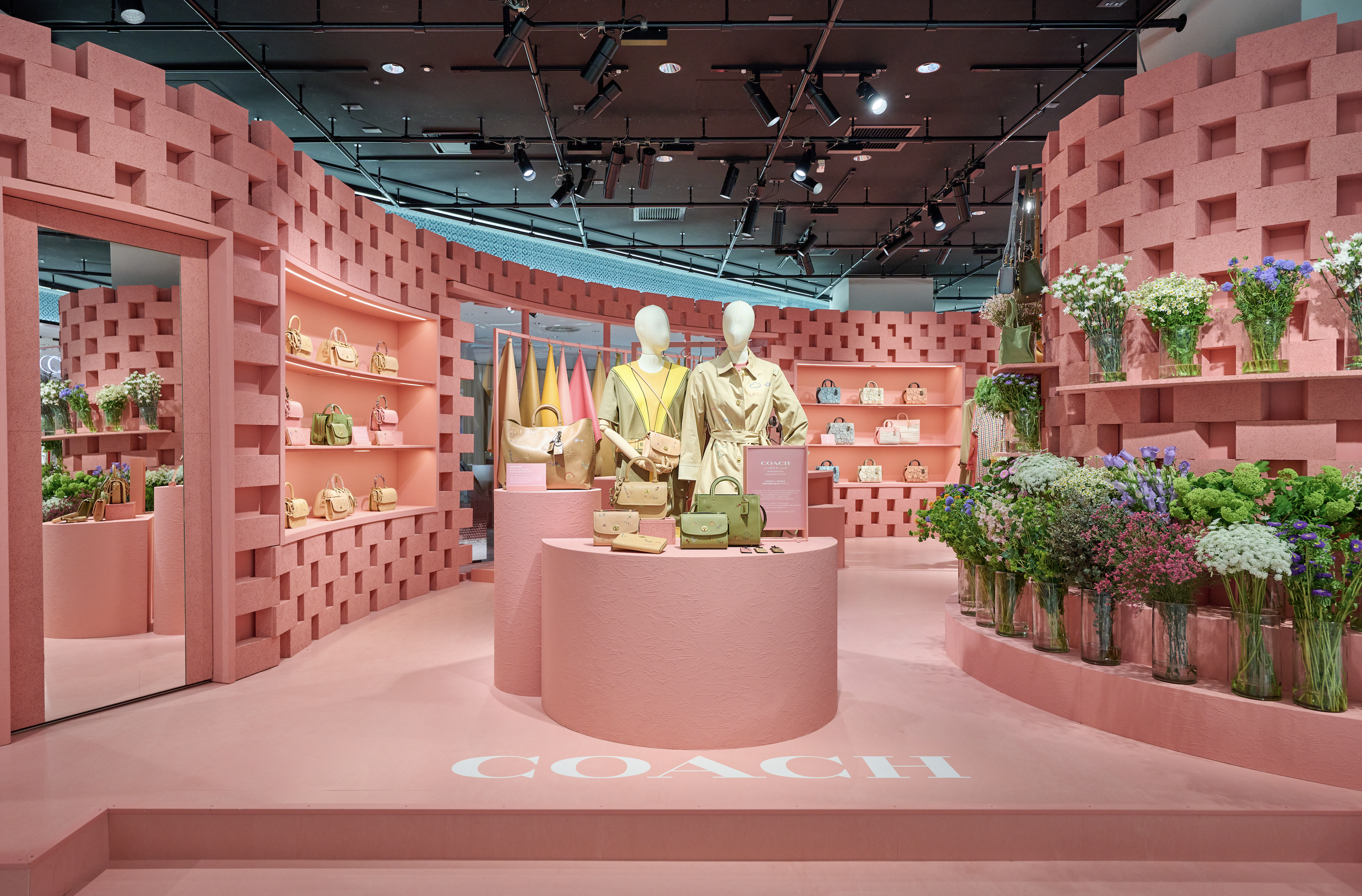 Coach Isetan The Stage pop-up is designed with the future in mind. We carefully selected sustainable materials for the construction of the space. The walls are made with thinned cypress wood that would otherwise be discarded. Flooring wrapped with waste vinyl materials.